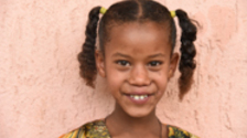 Kalkidan Yesuneh was in the third group of Community Based Care (CBC) students in Ethiopia, joining PATH in 2023. She was 8 years old with she joined PATH, and she lives with her younger brother and her mother. Kalkidan enjoys studying English in school, and at home she loves to play a traditional jump rope game. Her mother, Chaltu Amin, came into the program at 33 with a 3rd grade education. Chaltu hopes to begin a personal income generating activity of raising and selling livestock after receiving business training from PATH.